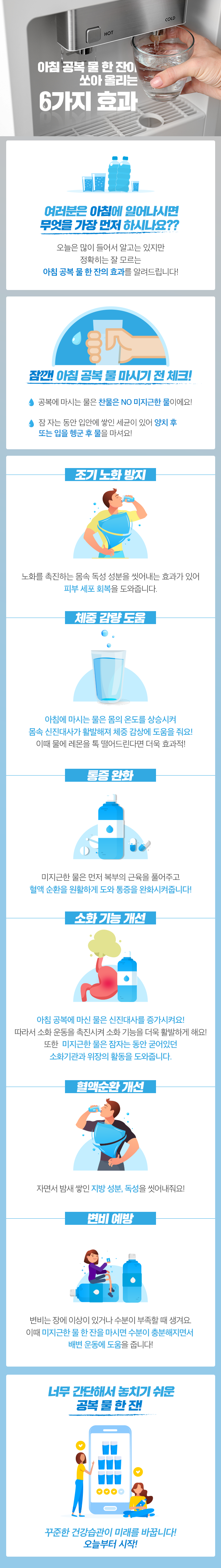 물을 마시는 습관을 들이면 피부 건강에도 좋고, 신진대사도 활발해져요. 아침에 일어나자마자 한 잔의 따뜻한 물로 시작해 보세요.